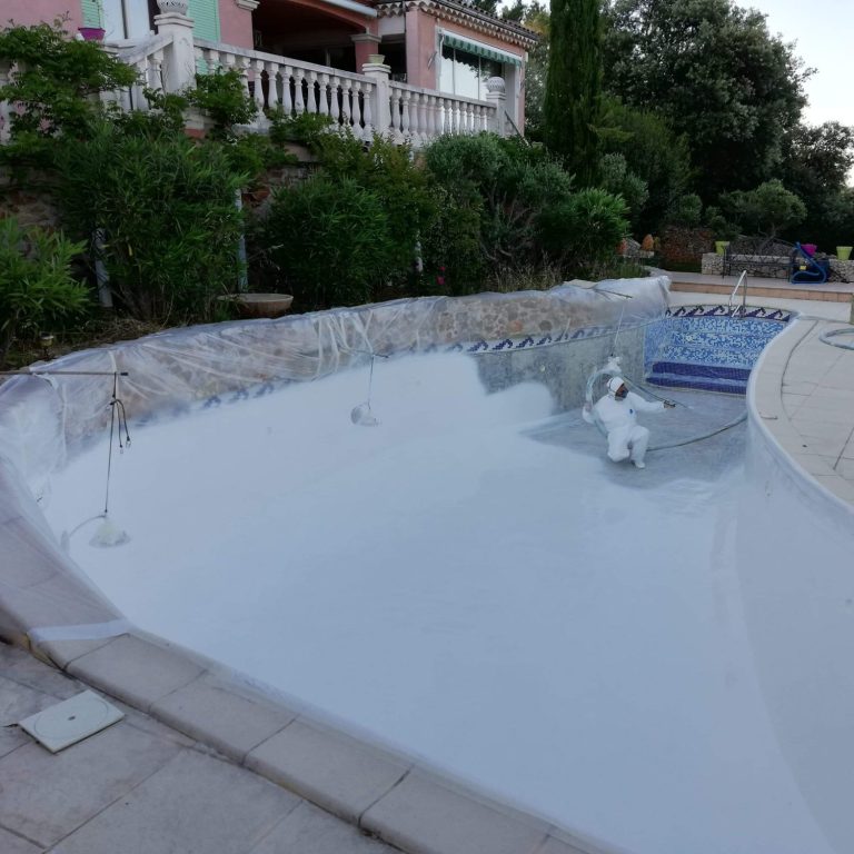 Application du gel coat pour redonner vie à votre piscine.